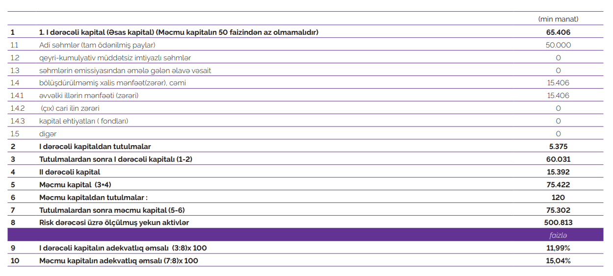 30 sentyabr 2023-cü il tarixində "Azər-Türk Bank" 75 milyon 302 min manat məcmu kapitala malik olub.