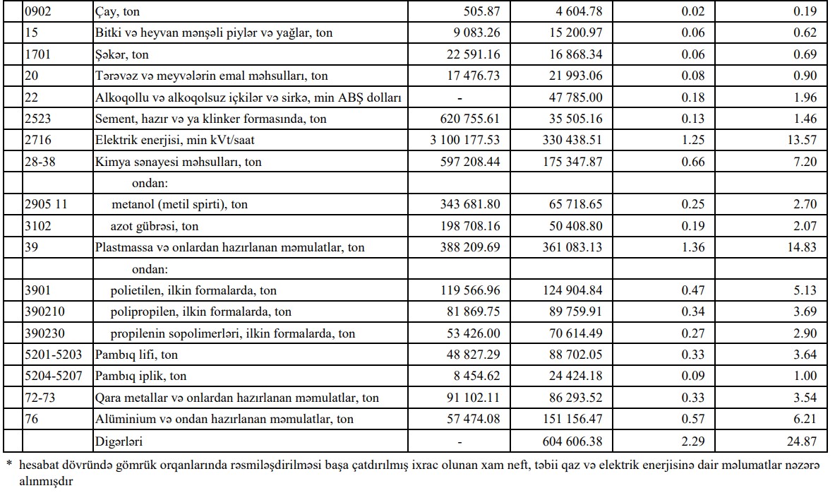 Azərbaycanın ən çox ixrac və idxal etdiyi mallar - YENİ SİYAHI