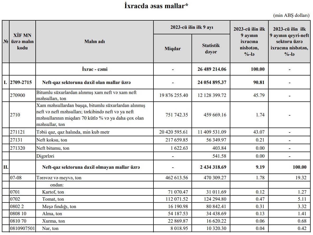 2023-cü ilin yanvar-sentyabr aylarında Azərbaycanın ən çox ixrac və idxal etdiyi mallar.