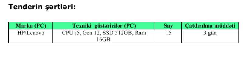 Bank kompüterlər alır - TENDER