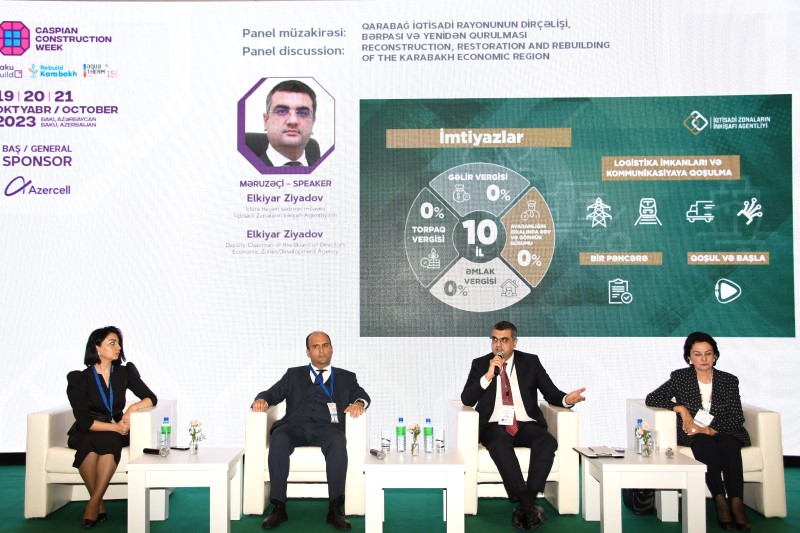 Sərgi çərçivəsində “Qarabağ iqtisadi rayonunun dirçəlişi, bərpası və yenidən qurulması” mövzusuna həsr edilmiş panel iclasda sənaye zonalarına dair təqdimat keçirilib.