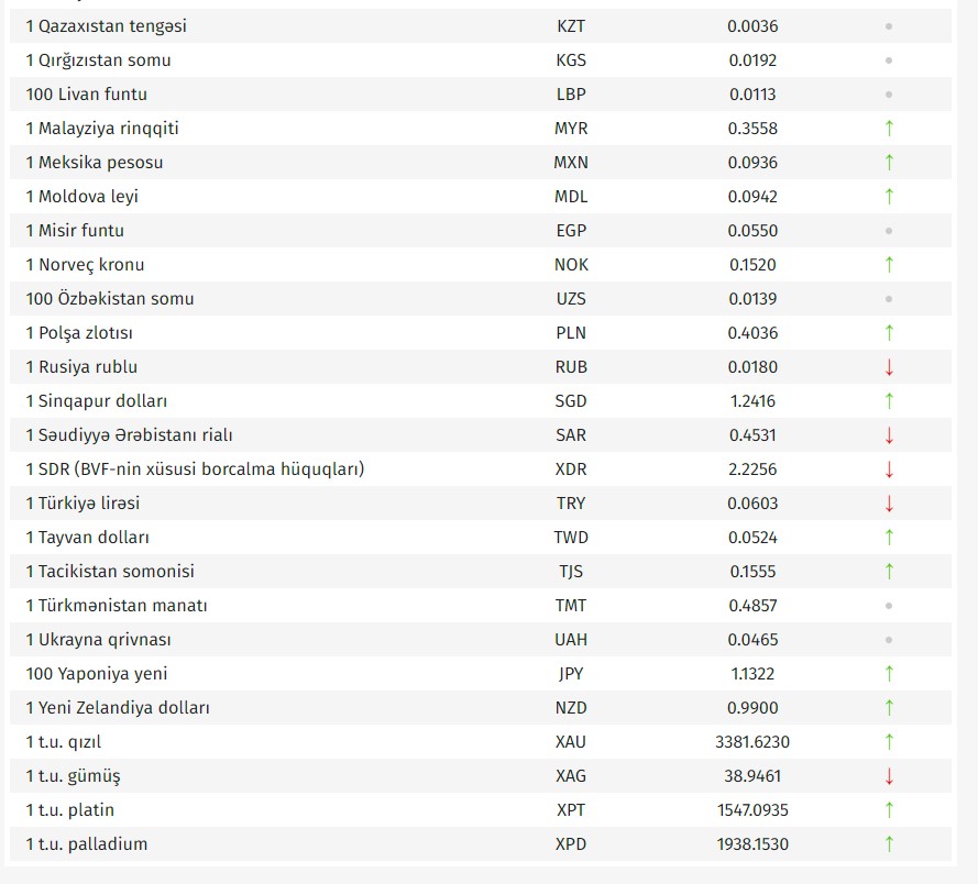 Rəsmi məzənnələr açıqlandı