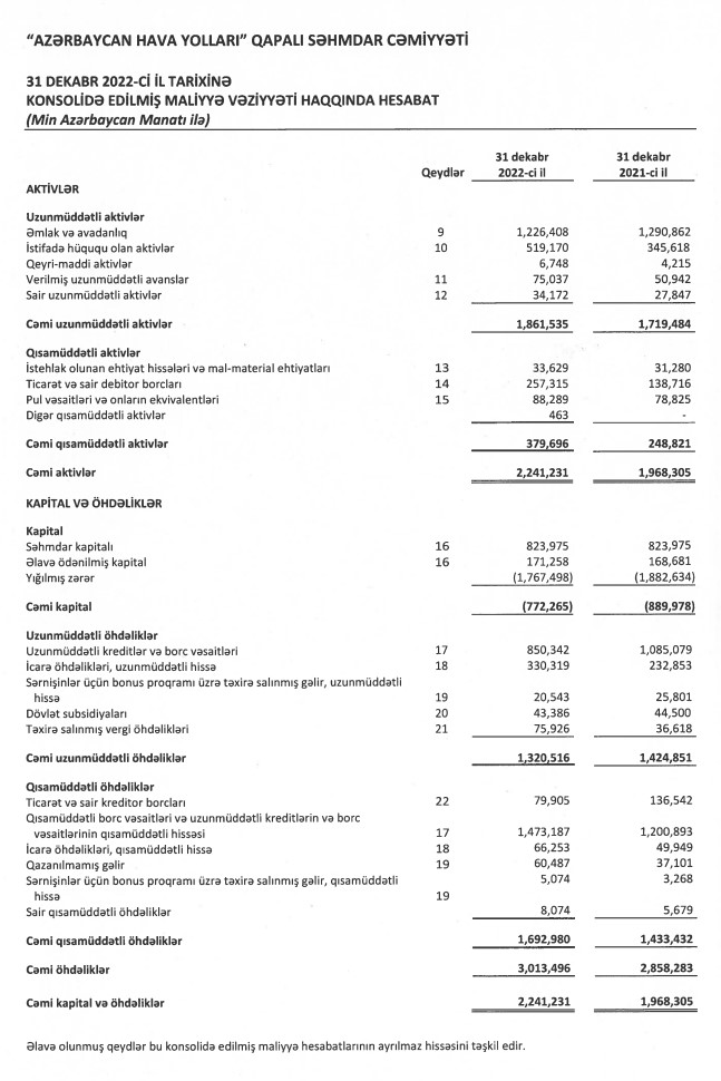 Biletlərinin baha olmasına görə tez-tez tənqid olunan "Azərbaycan Hava Yolları" QSC (AZAL) 2022-ci ili 110 milyon 620 min manat xalis mənfəət ilə başa vurub. Dövlət aviaşirkəti 2021-ci ili 67 milyon 547 min manat xalis zərər ilə bağlamışdı. Beləliklə, ötən il AZAL zərərdən mənfəətə keçib. AZAL-ın xalis zərəri 2019-cu ili 78 milyon 770 min manat, 2020-ci ili isə 76 milyon 415 min manat təşkil etmişdi.