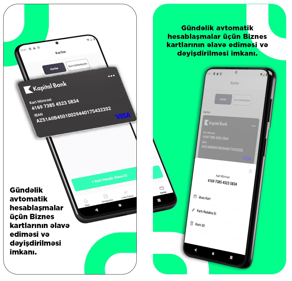- Yeni kartlarınızı əlavə etmək, yeniləmək və yaxud ləğv etmək