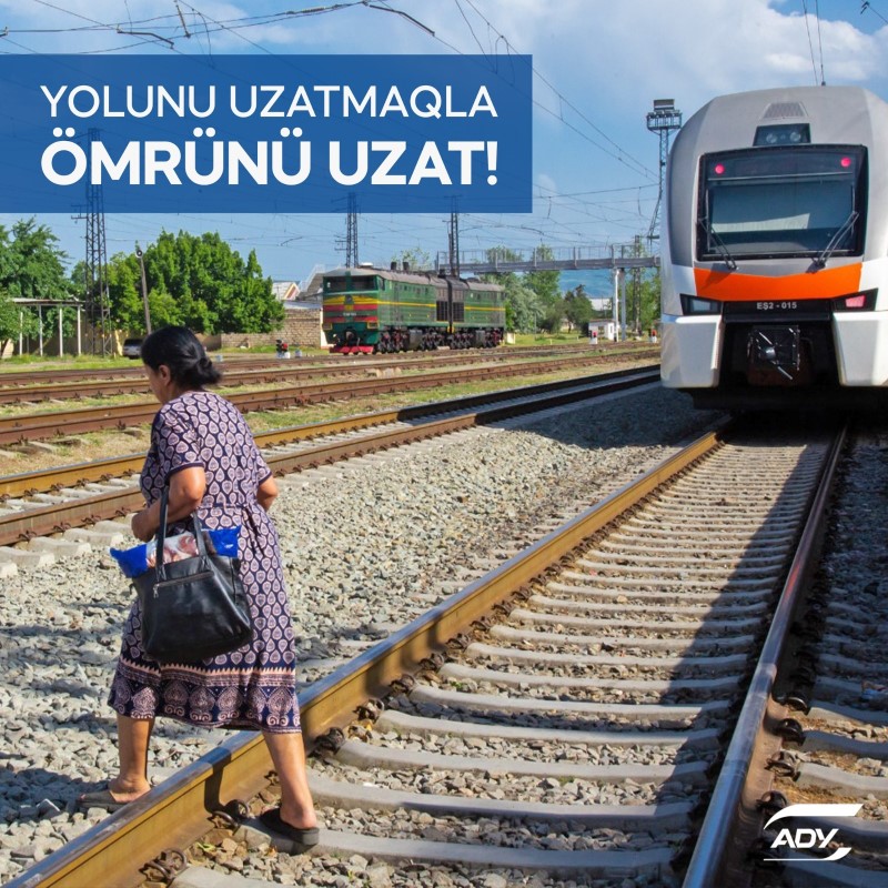 ADY piyadalara çağırış edir: dəmir yolu xətlərini yalnız müəyyən edilmiş yerlərdən keçmək şərtdir.ADY valideynlərə çağırış edir: qaydalara əməl etməklə övladlarınıza nümunə olun!