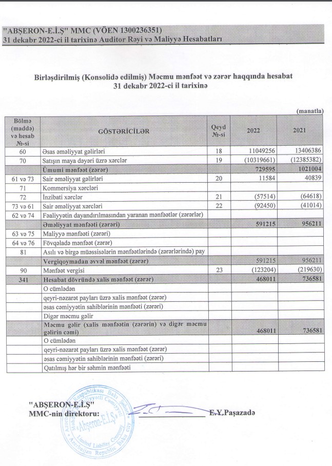 Marja.az xəbər verir ki, "Аbşeron elm-istehsalat müəssisəsi"nin satışdan gəlirləri (əsas əməliyyat gəlirləri) 2021-ci ildə 13 milyon 406 min manat ikən, 2022-ci ildə 11 milyon 49 min manata düşüb (17,6% azalıb).
