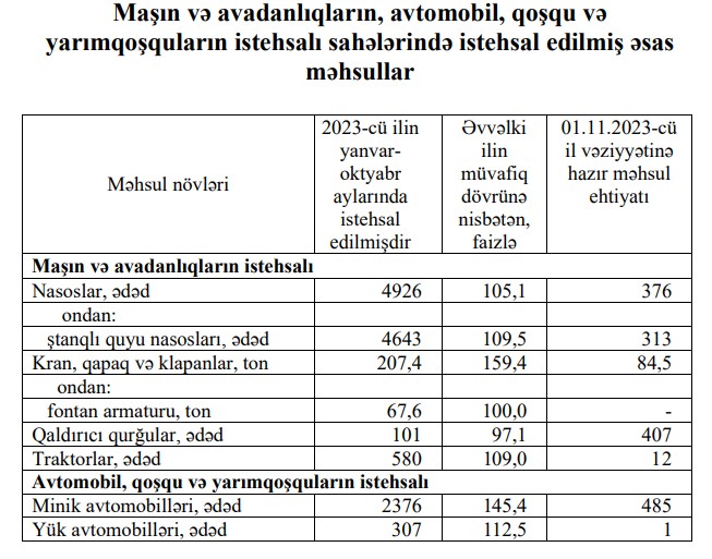 2023-сü ilin yanvar-oktyabr aylarında 307 ədəd və ya əvvəlki ilin müvafiq dövrü ilə müqayisədə 12,5% çox yük avtomobili istehsal olunub.