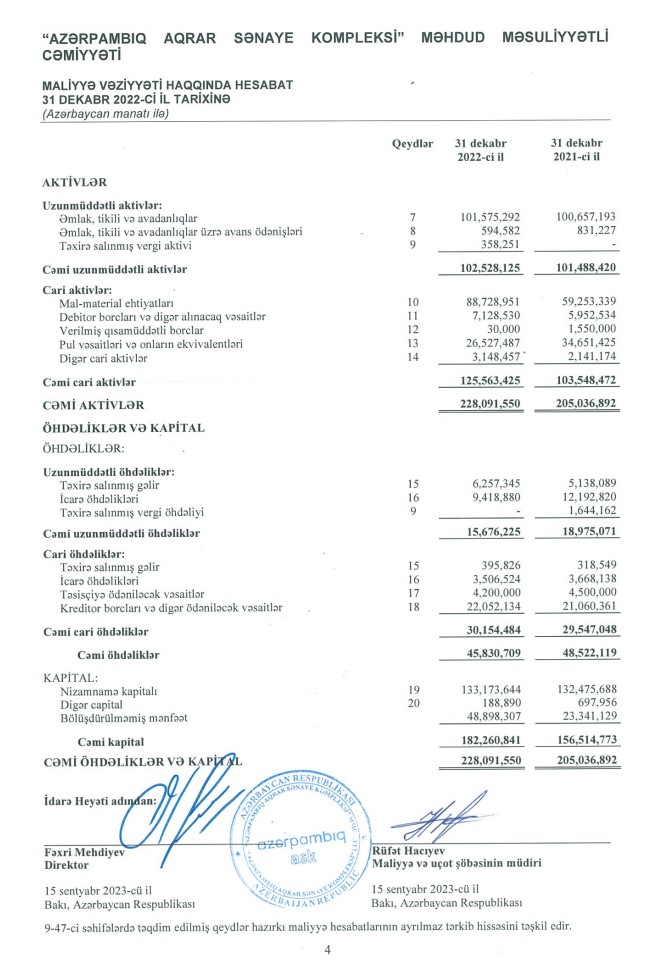 Xam pambığın toplanması və emalı üzrə ixtisaslaşmış “Azərpambıq Aqrar Sənaye Kompleksi” MMC 2022-ci ili 26 milyon 739 min manat xalis mənfəət ilə başa vurub. Şirkət 2021-ci ili 23 milyon 632 min manat xalis mənfəət ilə bağlamışdı.