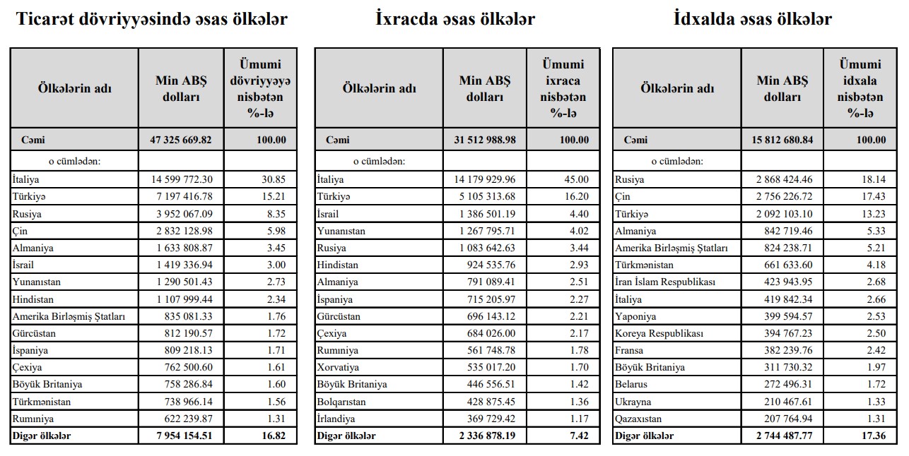 O cümlədən, cari ilin 11 ayında Rusiyaya ixrac 1 milyard 83 milyon 642 min dollar, Rusiyadan idxal 2 milyard 868 milyon 424 min dollar təşkil edib.