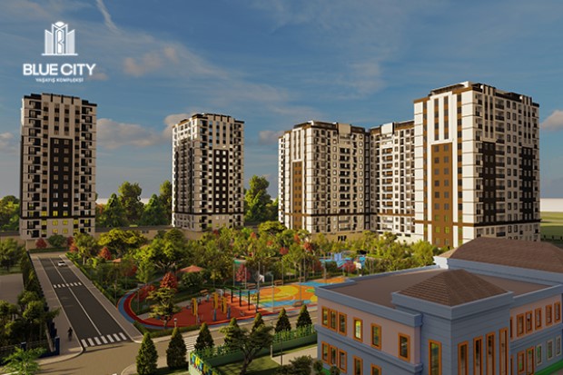 Daxilində müasir məktəb, bağça, 2 ədəd stadion, fitness-spa mərkəzi, supermarket və ticarət zonaları, yaşıllıqlar içində dincəlmə zonaları və s. ilə Abşeron rayonu ərazisində ilkə imza atan “Blue City” yaşayış kompleksində təhvilə hazır olan binaların mənzil sahiblərinə təmirə təhvil verilməsi üçün yekun tamamlanma işləri aparılır. Sözügedən binalarda fasad işləri, pəncərə çərçivələri və şüşələrinin qoyulması və mənzil giriş qapılarının quraşdırılması, eyni zamanda binalarda liftlərin quraşdırılması, daxili su, işıq, qaz və yanğından mühafizə boru xətləri layihə tələblərinə uyğun olaraq uğurla yekunlaşmışdır.