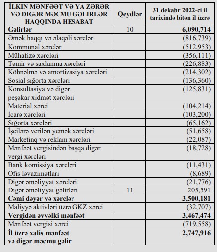 Şirkət ofis icarəsindən illik gəlirini və mənfəətini açıqlayıb