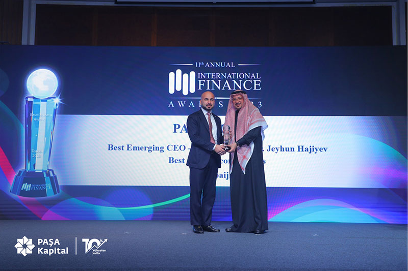 Azərbaycan investisiya bazarında ən yüksək dövriyyəyə malik olan PAŞA Kapital, 2023-cü ildə əldə etdiyi nailiyyətlə “International Finance” maliyyə jurnalı tərəfindən “Best Fixed Income Bonds – Azerbaijan 2023”, şirkətin Baş İcraçı Direktoru Ceyhun Hacıyev isə “Best Emerging CEO - Mr. Jeyhun Hajiyev – Investments – Azerbaijan 2023” kateqoriyasında təltif edilib.