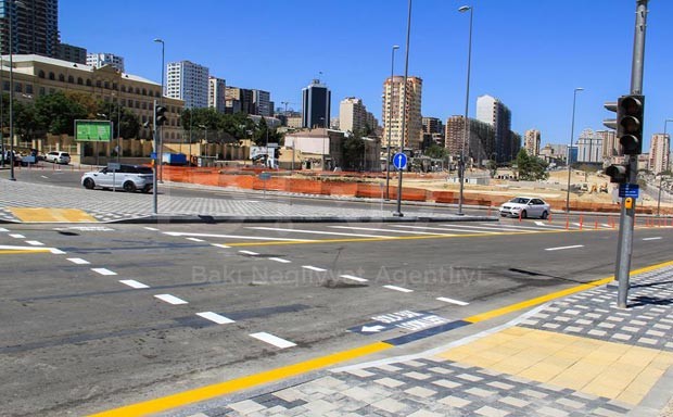 "Sözügedən ərazidə 17 ədəd piyada keçidi salınıb. Paytaxtın digər küçə və prospektlərindən fərqli olaraq, burada işıqforlarla nizamlanan piyada keçidləri xüsusi qırıq xətlərlə nişanlanıb. Piyadaların yolun hərəkət hissəsində diqqətli olmaları üçün xəbərdaredici məlumatlar yazılıb. Paytaxtda xarici turistlərin olduğunu nəzərə alaraq, bu məlumatlar ingilis dilində də qeyd edilib. Hərəkətin təhlükəsizliyi nəzərə alınaraq işıqfor dirəklərində də 3 dildə (Azərbaycan, rus və ingilis) xəbərdaredici məlumat lövhələri quraşdırılıb", - deyə BNA-dan bildirilib.