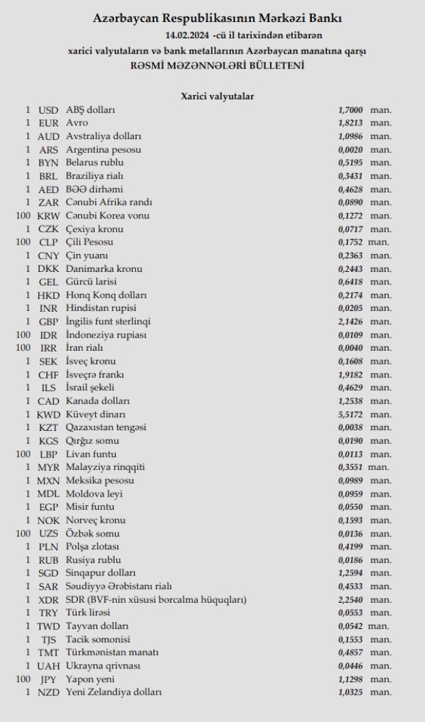 Mərkəzi Bankdan 2026-cı ildə Dollar/Manat məzənnəsi barədə açıqlama