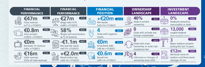 10 klubun ümumi gəliri 47 milyon avro olub. 18 milyon avro (38 faiz) kommersiya gəlirindən əldə edilib.