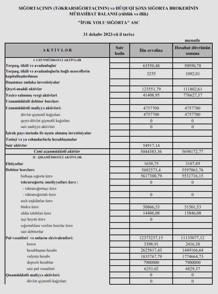 "İpək Yolu Sığorta" ASC 2023-cü ili 667 min manat xalis mənfəət ilə başa vurub. Şirkət 2022-ci ili 913 min manat xalis mənfəət ilə bağlamışdı. Beləliklə, ötən il "İpək Yolu Sığorta"nın xalis mənfəəti 246 min manat və ya 26,9% azalıb. Xalis mənfəətin azalması ehtiyatlara ayırma, yığımların azalması və ödəniş xərclərinin artması ilə əlaqədardır.