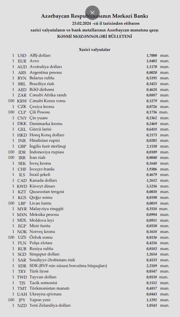 Dolların sabah üçün rəsmi məzənnəsi müəyyən olunub