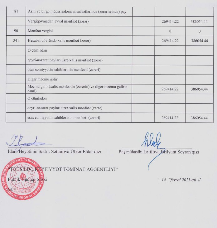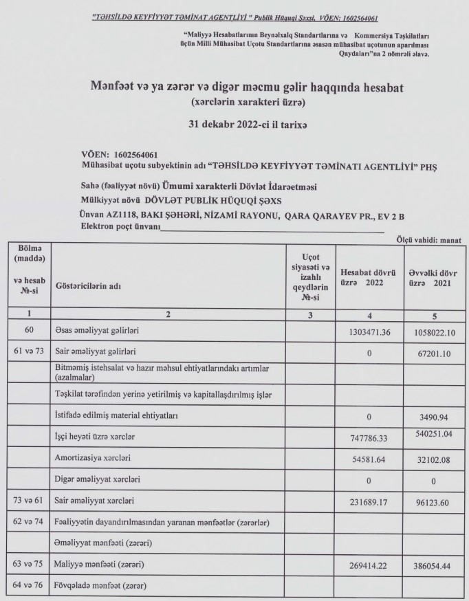 Təhsildə Keyfiyyət Təminatı Agentliyinin mənfəəti azalıb