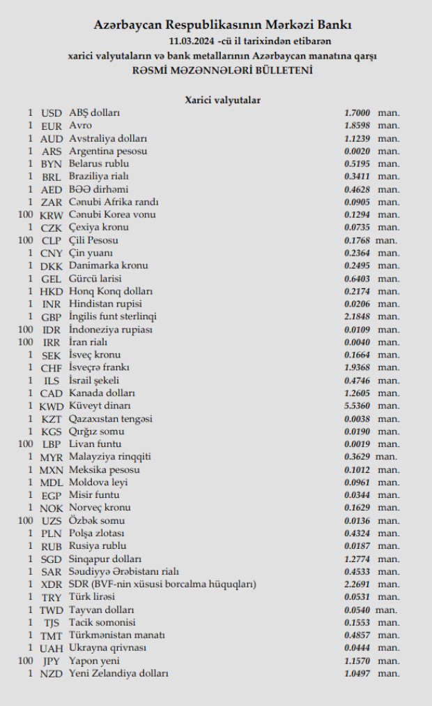 Mərkəzi Bankdan 2026-cı ildə Dollar/Manat məzənnəsi barədə açıqlama