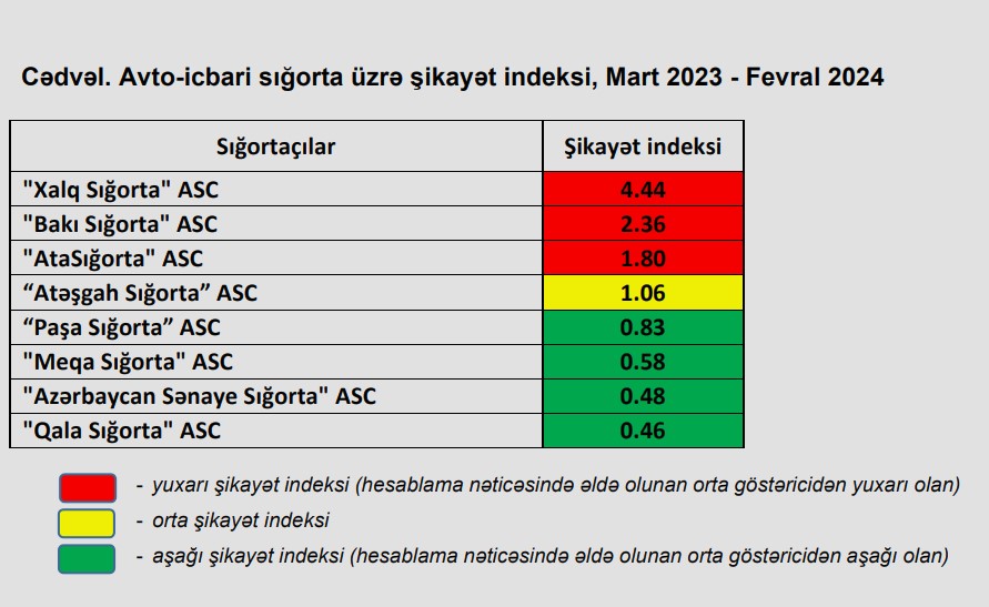 Avto-icbari sığorta üzrә xidmətin aşağı, orta və yüksək olduğu şirkətlər açıqlandı