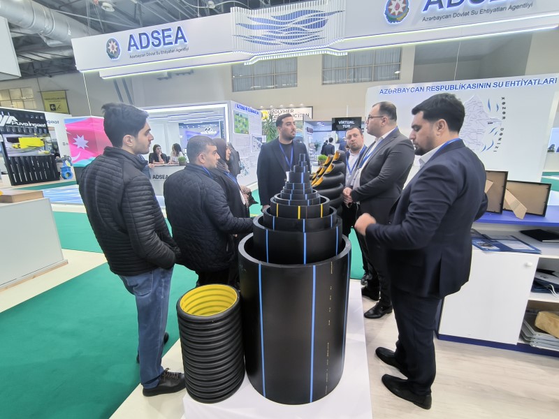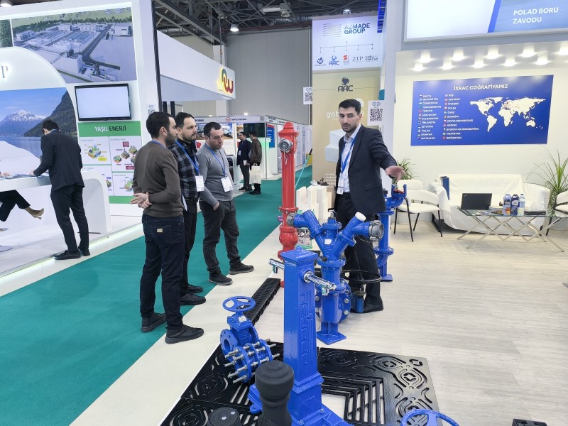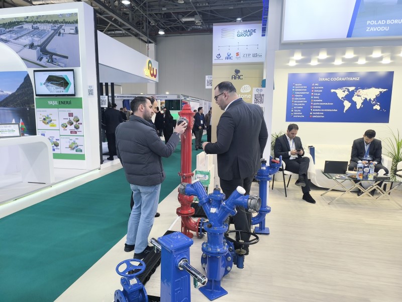 Stendimizdə müxtəlif təyinatlı iri diametrli spiral tikişli polad borular, HDPE su və qaz boruları, HDPE fitinqlər, müxtəlif tipli hidrotexniki qurğular - siyirtmələr, hidrantlar, yağış suyu barmaqlıqları, quyu qapaqları və laborator xidmətlər, həmçinin , metal hasarlar, çirkab su boruları, kabel qoruyucu və optik kabellər üçün borular uğurla nümayiş edilmişdir.