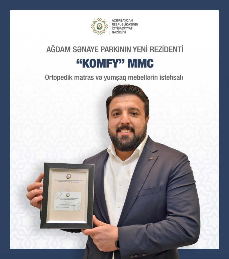 "Komfy" MMC-yə Ağdam SənayeParkı-nın rezidenti statusu verilib.