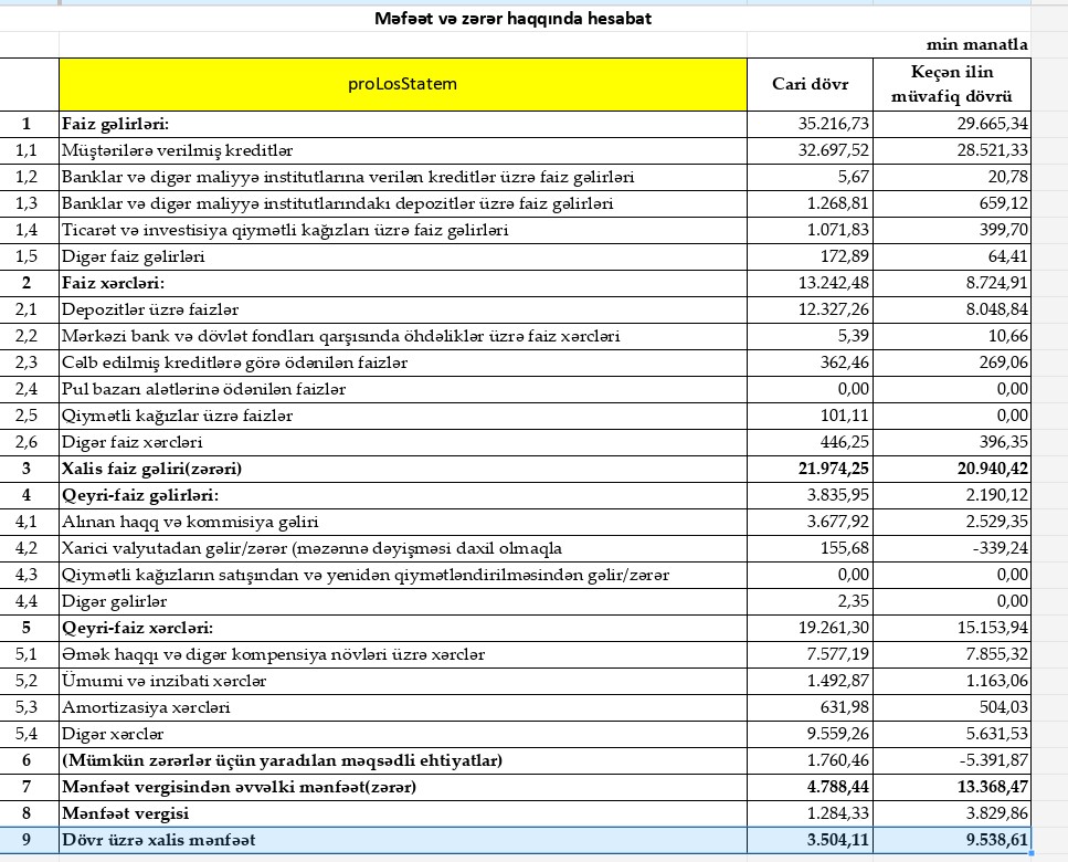 "Bank of Baku" ASC 2024-cü ilin 1-ci rübünü (yanvar-mart) 3 milyon 504 min manat xalis mənfəət ilə başa vurub.