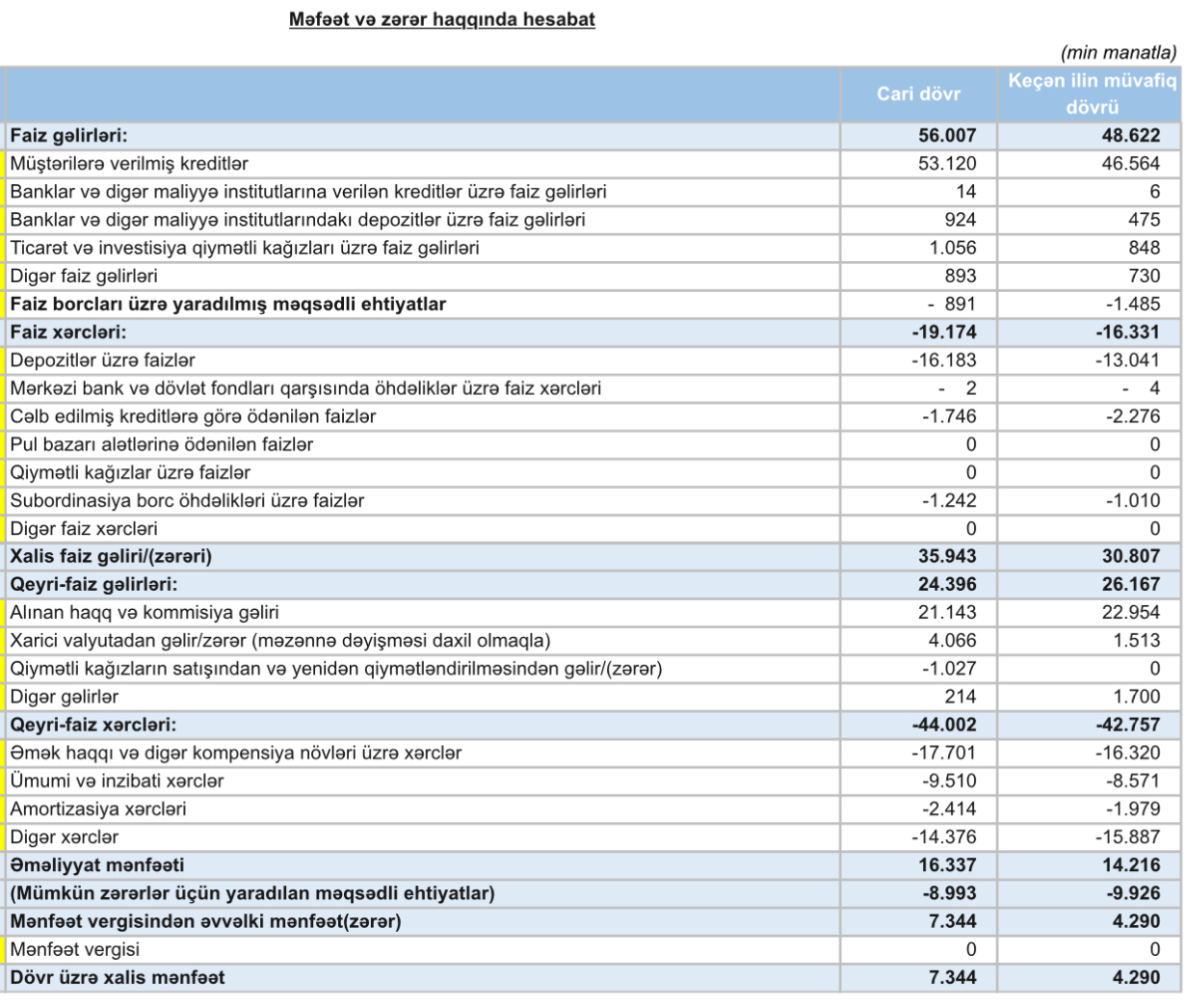 Unibank birinci rübün maliyyə nəticələrini açıqlayıb