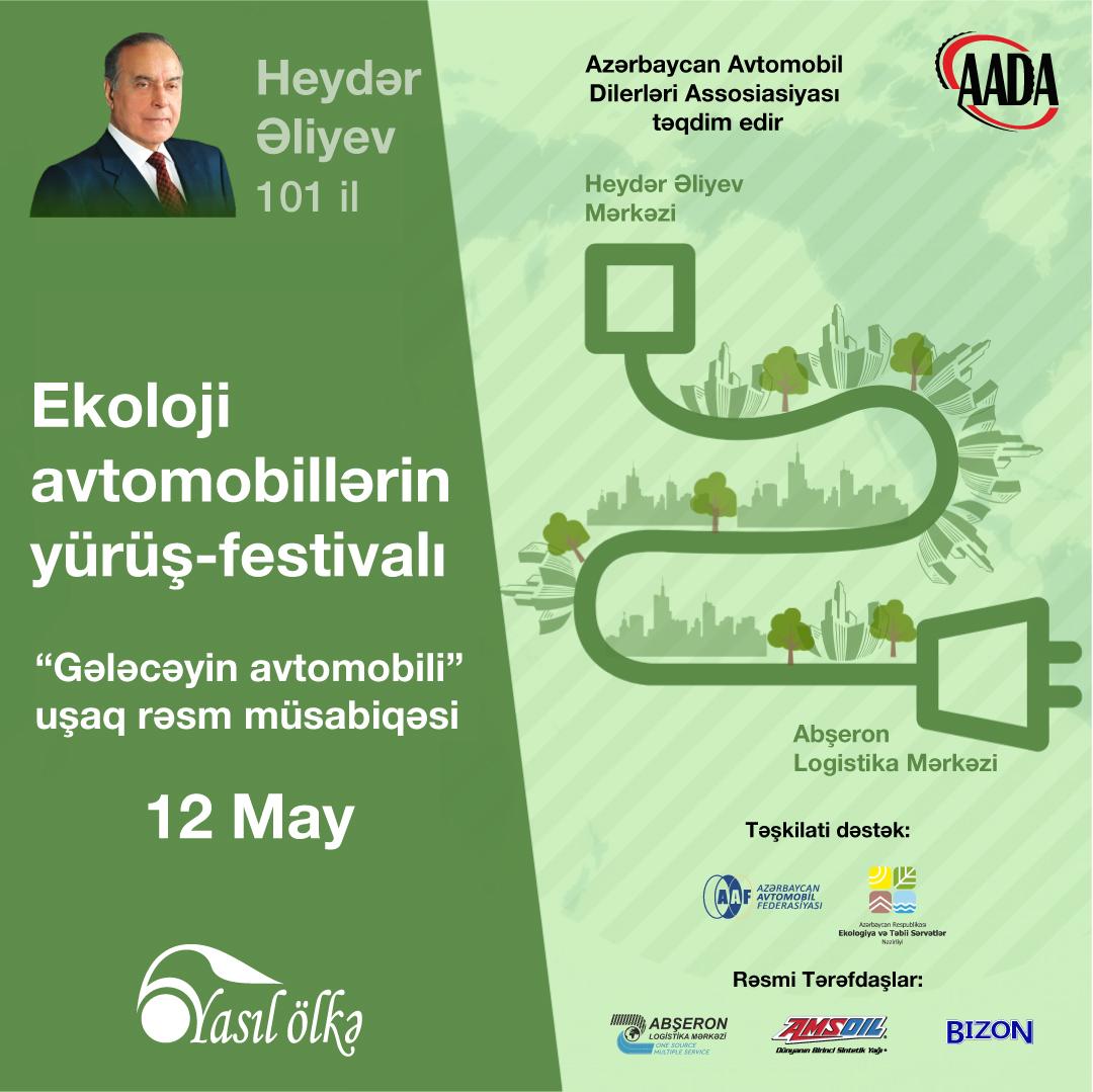 12 Mayda "Ekoloji yürüş-festival 2024" baş tutacaq. Yürüşün finişi Abşeron Logistika Mərkəzində gerçəkləşəcək.Azərbaycan Avtomobil Dilerləri Assosiasiyası (AADA) növbəti dəfə ekoloji avtomobillərin yürüş-festivalını təqdim edir. Hər ilin may ayında keçirilən ənənəvi festival Ümummilli lider Heydər Əliyevin doğum gününə həsr olunur.