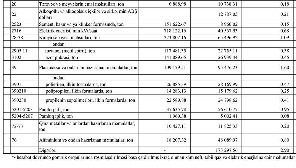 Azərbaycanın ən çox ixrac və idxal etdiyi mallar - YENİ SİYAHILAR
