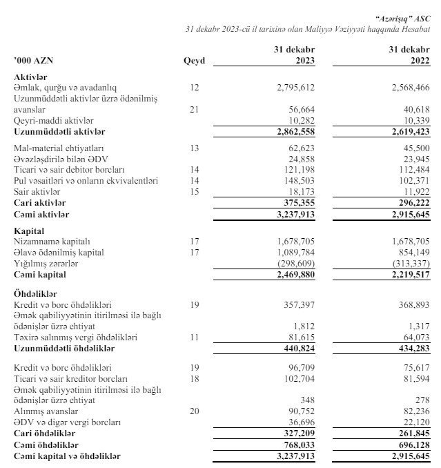 2023-cü ildə “Azərişıq” ASC-nin 1 milyard 619 milyon 371 min manat satış gəlirinin 85,2%-ni və ya 1 milyard 379 milyon 874 min manatını satışın maya dəyəri təşkil edib. Şirkətin digər cəmi xərcləri isə 207 milyon 992 min manat olub. Ötən il “Azərişıq” 31 milyon 572 min manat əməliyyat mənfəətindən 16 milyon 844 min manat mənfəət vergisi ödəyib.