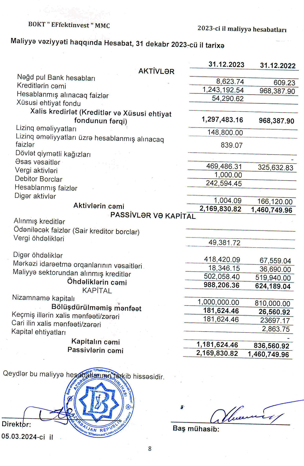 Ötən il "Effektinvest" MMC-nin kredit portfeli (müştərilərə verilmiş cəmi kreditlər) 28,4% artaraq 31 dekabr 2023-cü il tarixində 1 milyon 243 min manata çatıb.