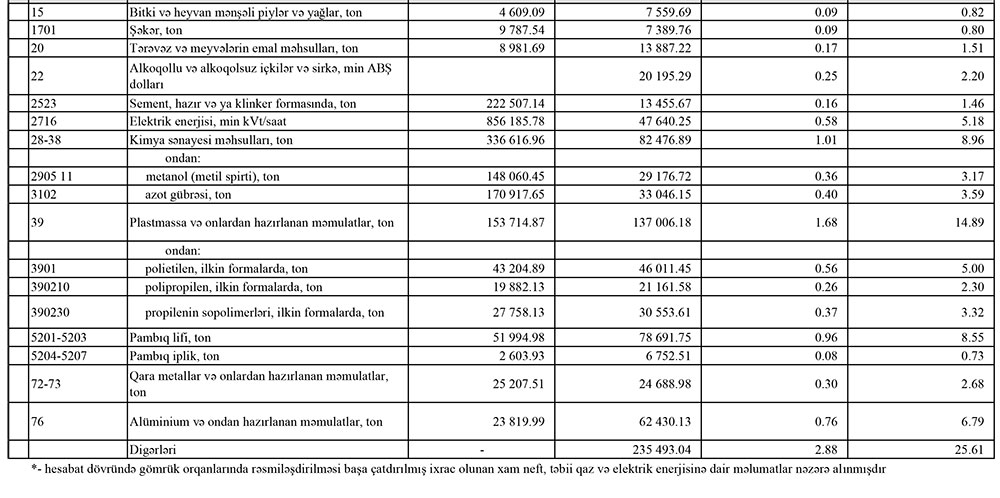 Azərbaycanın ən çox ixrac və idxal etdiyi mallar - YENİ SİYAHI