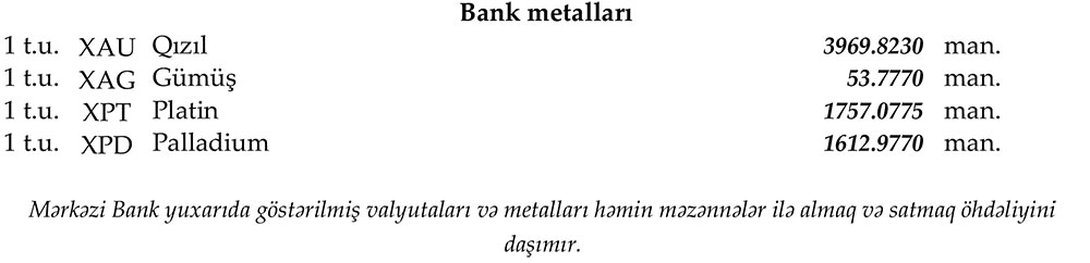 Rəsmi məzənələr açıqlandı