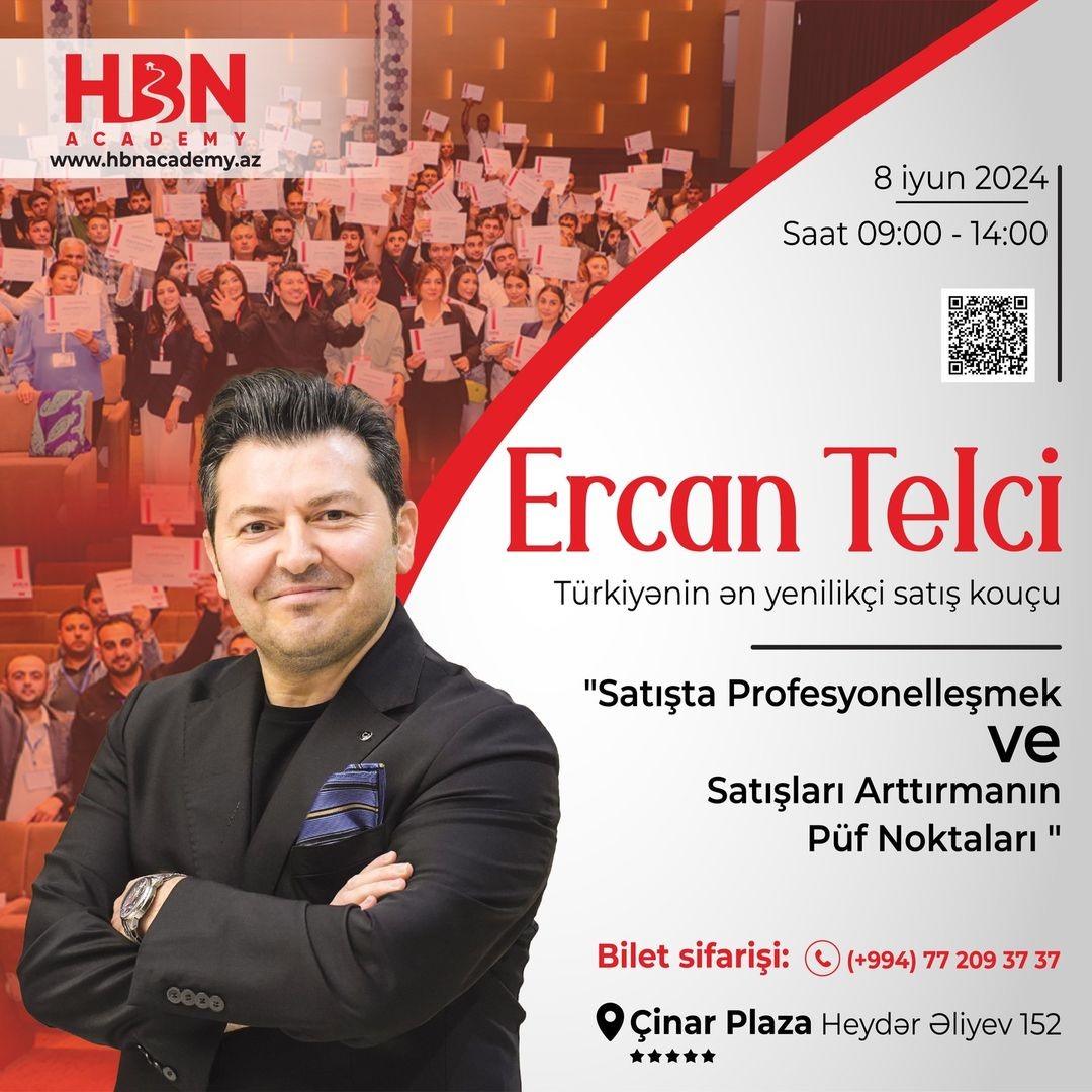 (®) 08 iyun 2024-cü il tarixində, Bakıda “HBN Academy”nin təşkilatçılığı ilə tanınmış təlimçi Ercan Telci tərəfindən “Satışda peşəkarlaşmaq və satışları artırmaq üçün məsləhətlər” mövzusunda təlim keçiriləcək.