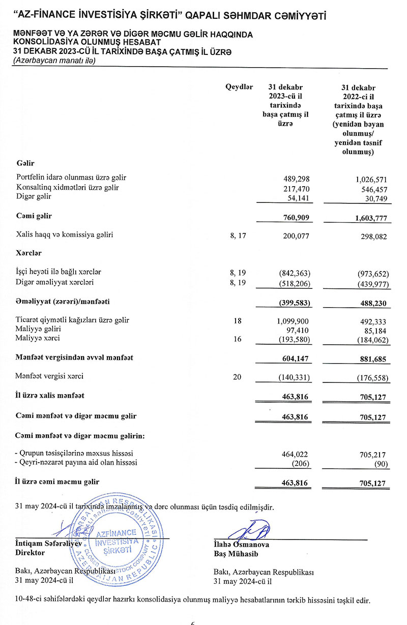 Ötən “AzFinance İnvestisiya Şirkəti” QSC cəmi aktivləri 2 milyon 872 min manat və ya 24,1% artaraq 31 dekabr 2023-cü il tarixində 14 milyon 772 min manata çatıb. Aktivlərdəki artım borc qiymətli kağızları üzrə investisiyaların 3 dəfə artaraq 2 milyon 380 min manata yüksəlməsilə əlaqədardır.