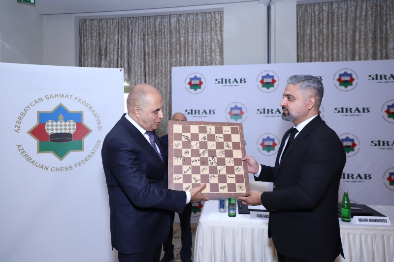 Tədbirin sonunda AŞF rəhbərliyi Bakıdakı Dünya Kubokunda iştirak edən ulduz şahmatçıların imzaladığı şahmat lövhəsini “Sirab” kollektivinə hədiyyə edib. “Sirab” federasiyaya özəl hazırlanan kreativ hədiyyə verib. Şirkətin baş direktoru Alper Yaycılı AŞF rəhbərinə üzərində Azərbaycanın tanınmış şahmatçıları Teymur Rəcəbov, Şəhriyar Məmmədyarov, Ülviyyə Fətəliyeva və Ayan Allahverdiyevanın kiçik heykəlləri olan şahmat dəstini təqdim edib.