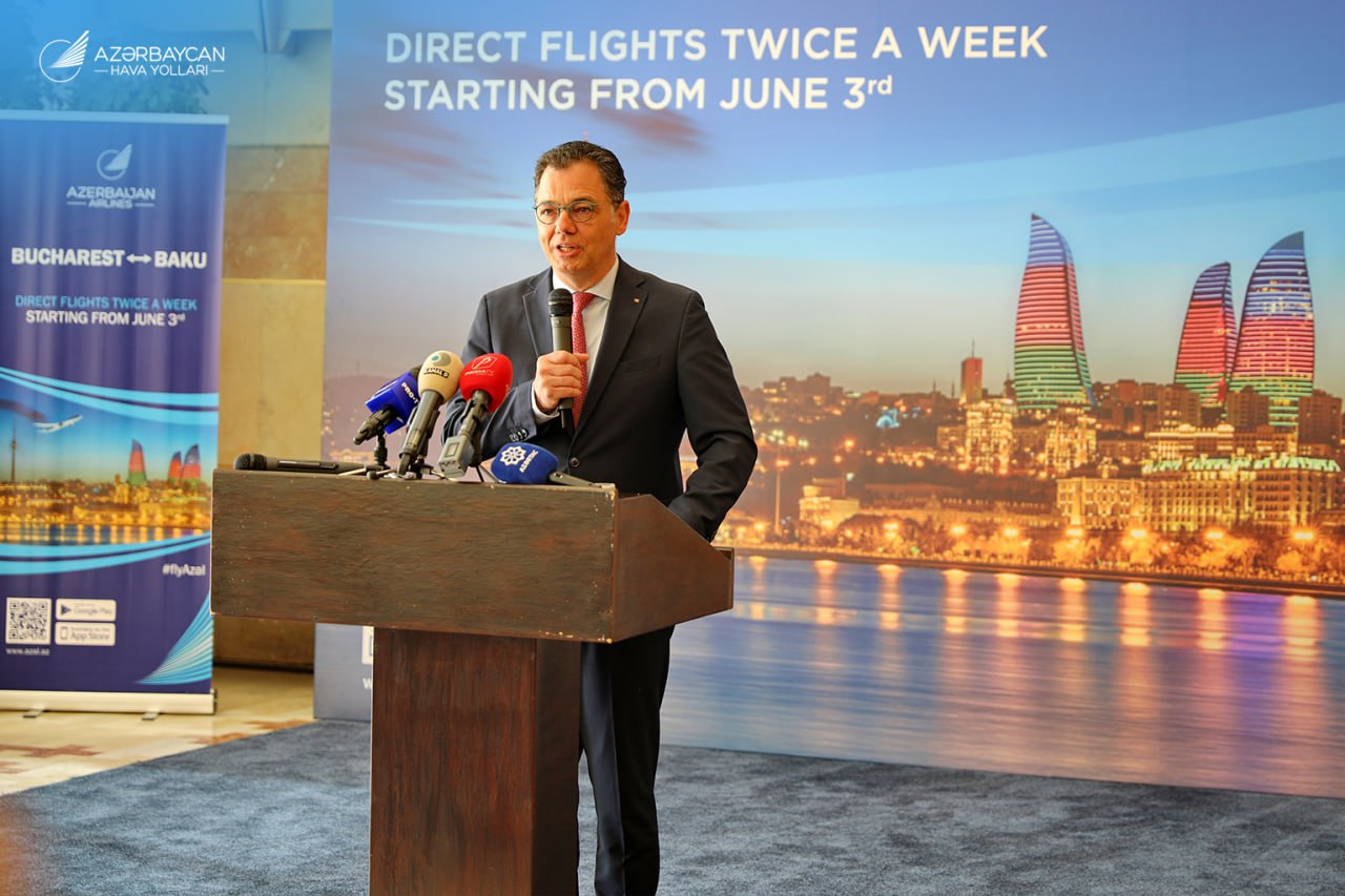 Buxarestdə aviaşirkətin ilk reysinin yerinə yetirilməsi münasibətilə təntənəli mərasim keçirilib.