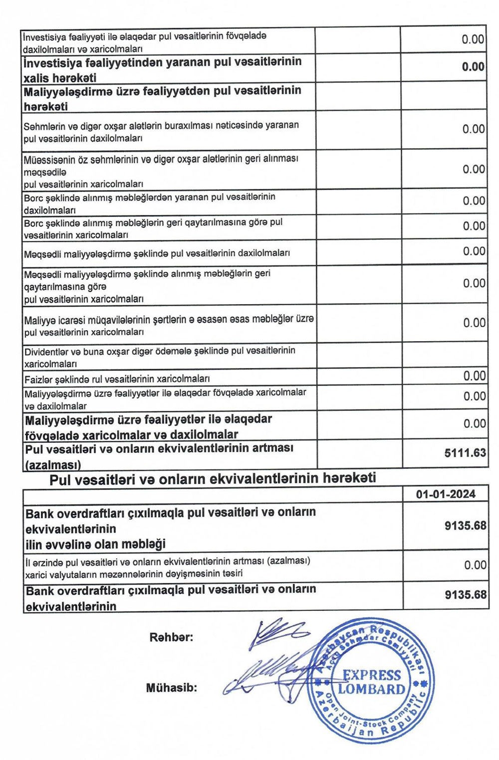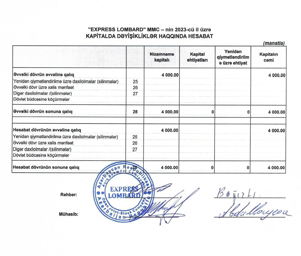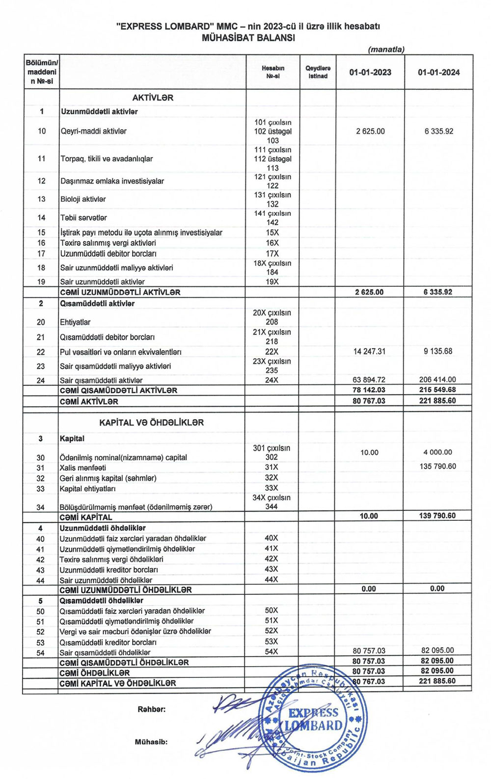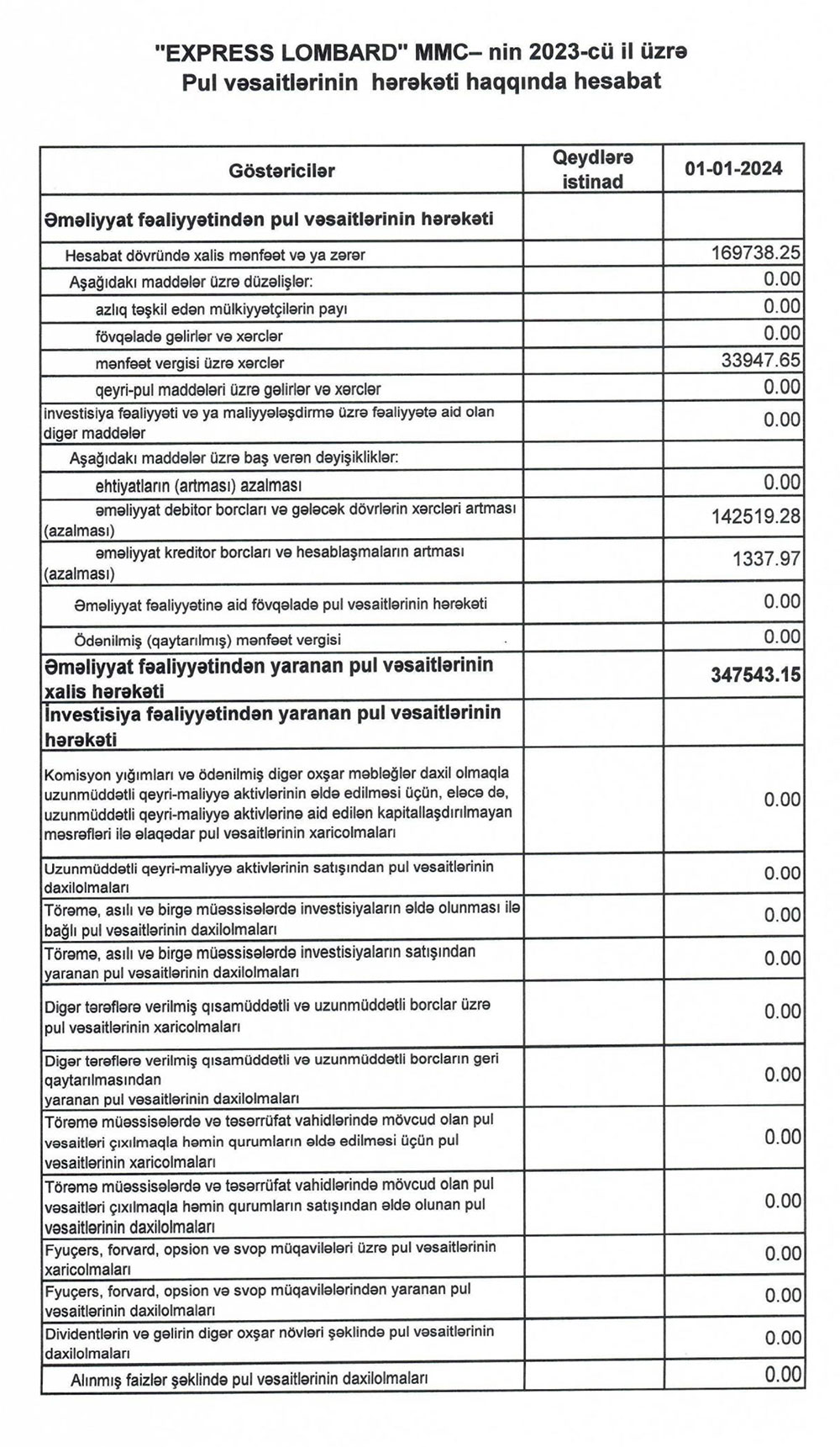 Lombard fəaliyyətilə məşğul olan "Express Lombard" MMC 2023-cü ili 135 min 791 manat xalis mənfəət ilə başa vurub.