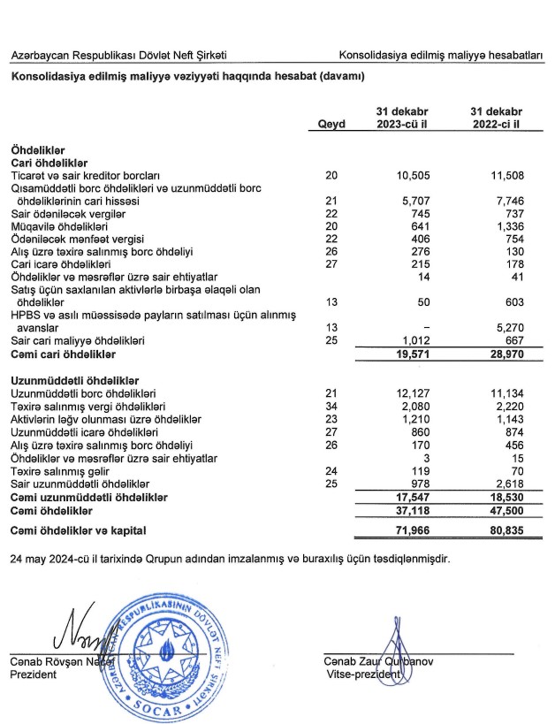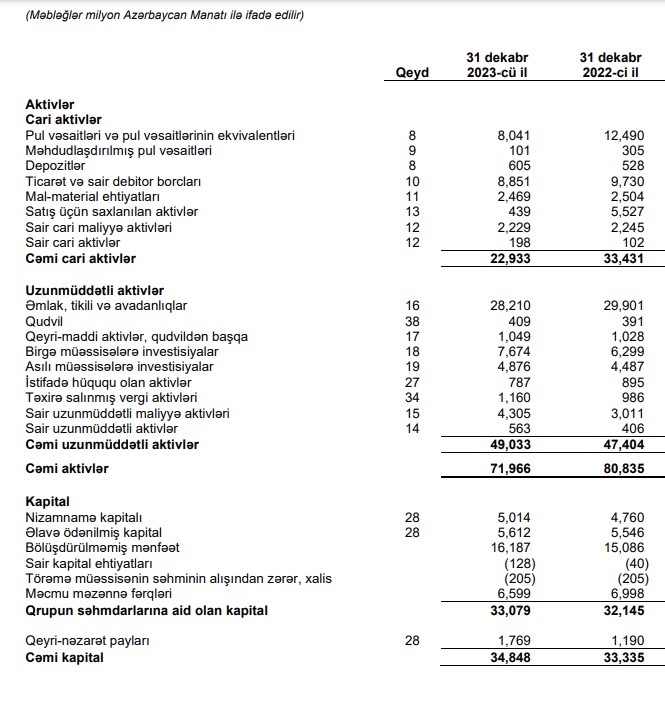 Ötən il SOCAR-ın cəmi aktivləri 8 milyard 869 milyon manat və ya 11% azalaraq 71 milyard 966 milyon manata düşüb. Şirkət 2022-ci ilin sonunda 80 milyard 835 milyon manat cəmi aktivlətə malik idi.