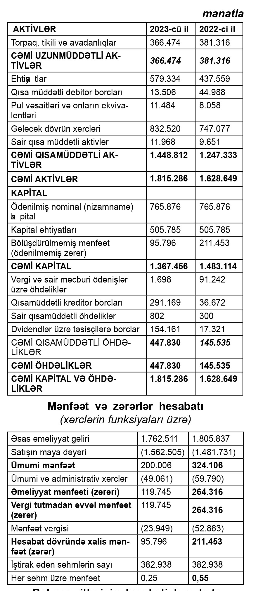 “Bakı Neft-Mədən Avadanlıqları” şirkətinin xalis mənfəəti 2 dəfədən çox azalıb