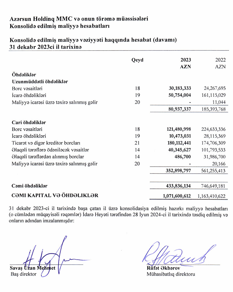 Qrup 31 dekabr 2023-cü il tarixində 518 milyon manata yaxın bölüşdürülməmiş mənfəətə malik olub.