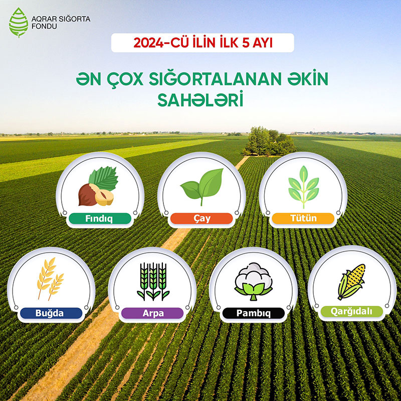 İlk 5 ayın nəticələrinə görə, ən çox sığortalanan əkinlər fındıq, çay, tütün, buğda, arpa, pambıq və qarğıdalı olub.