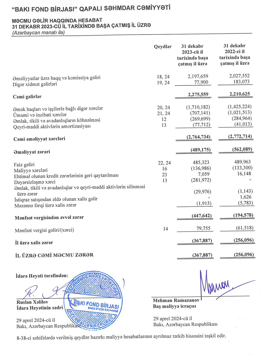 Ötən il dəyərsizləşmə xərci, həmçinin əməkhaqqı xərclərinin artması birjanın cəmi xərclərini daha da artıb və bu da xalis zərərin yüksəlməsilə nəticələnib.