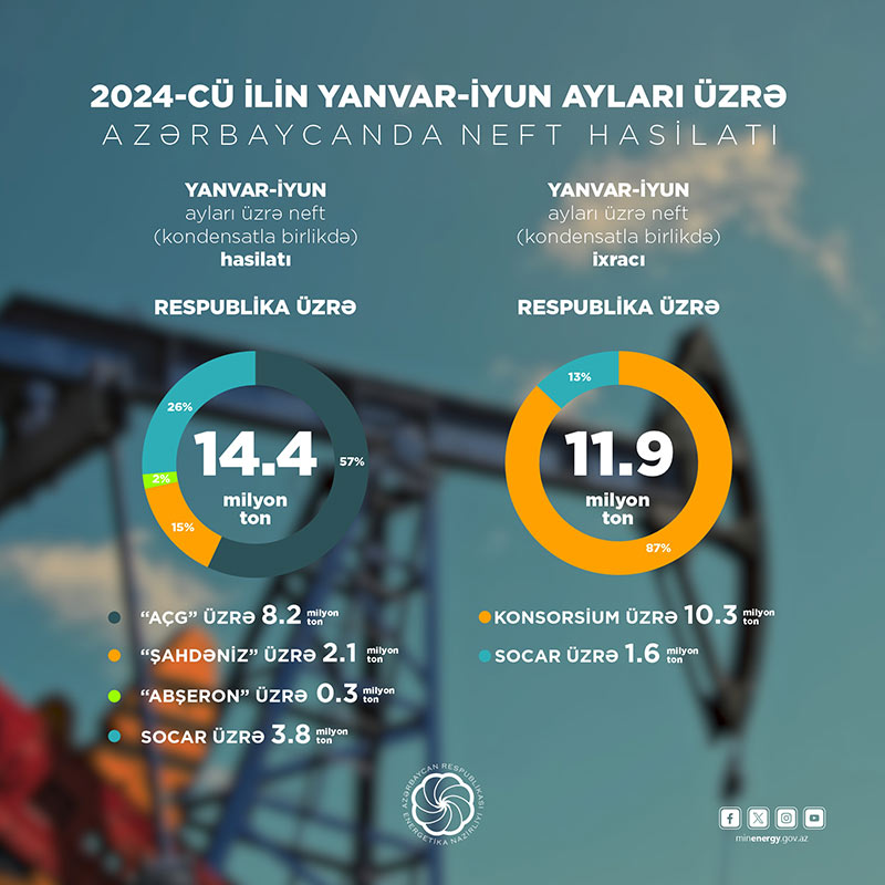 2024-cü ilin iyun ayında gündəlik neft (kondensatla birlikdə) hasilatı 80 585 ton olub. Bunun 65 597 tonunu xam neft, 14 988 tonunu kondensat təşkil edib.