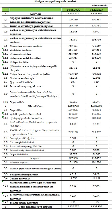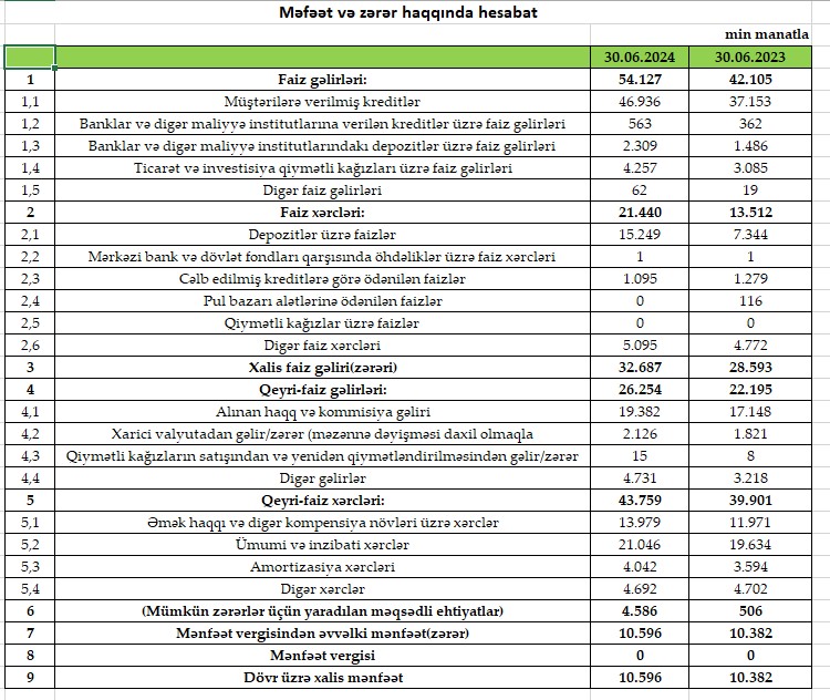 "Rabitəbank" 2024-cü ilin 1-ci yarısını xalis mənfəət ilə başa vurub
