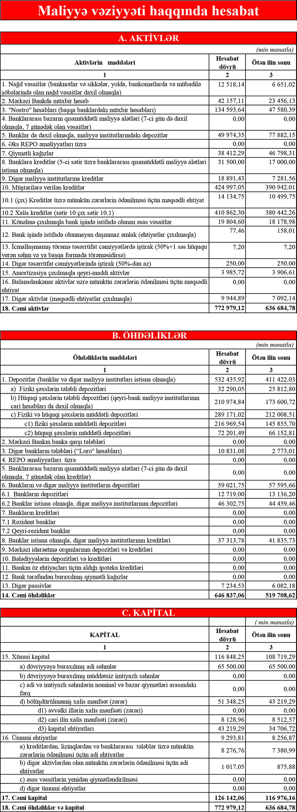 BANK BÖYÜYÜB, MÜŞTƏRİLƏRƏ VERİLƏN KREDİTLƏR ARTIB