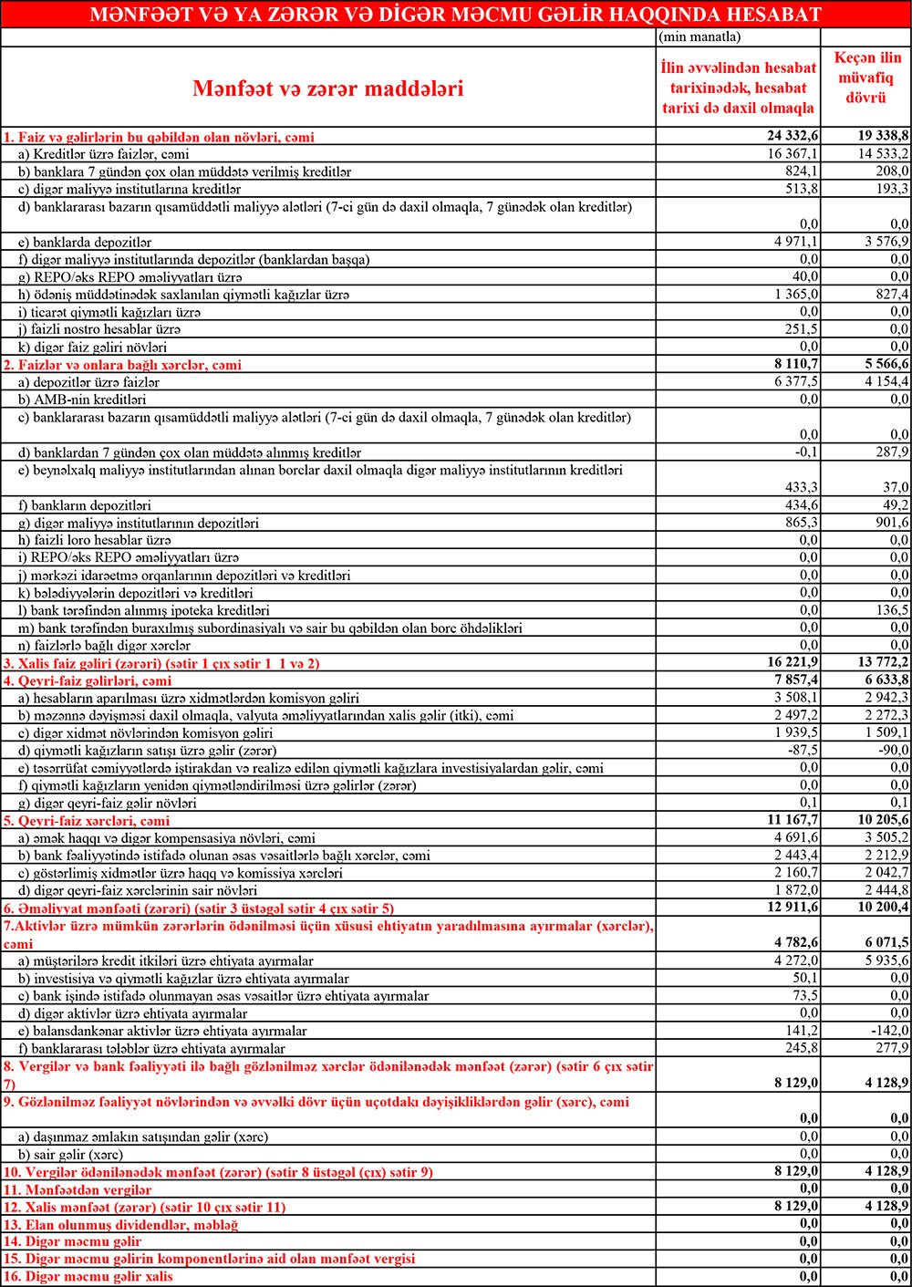 “Ziraat Bank Azərbaycan” ASC 2024-cü ilin 1-ci yarısını (yanvar-iyun) 8 milyon 129 min manat xalis mənfəət ilə başa vurub. Bank ötən ilin eyni dövrünü 4 milyon 129 min manat xalis mənfəət ilə bağlamışdı. Beləliklə, “Ziraat Bank Azərbaycan” nın xalis mənfəəti 2024-cü ilin ilk 6 ayında 2023-cü ilin eyni dövrü ilə müqayisədə 4 milyon manat və ya 2 dəfə artıb. Xalis mənfəətin artması həm gəlirlərin artmasından, həm də aktivlər üzrə mümkün zərərlərin ödənilməsi üçün xüsusi ehtiyata ayrılan vəsaitin azalmasından qaynaqlanır.