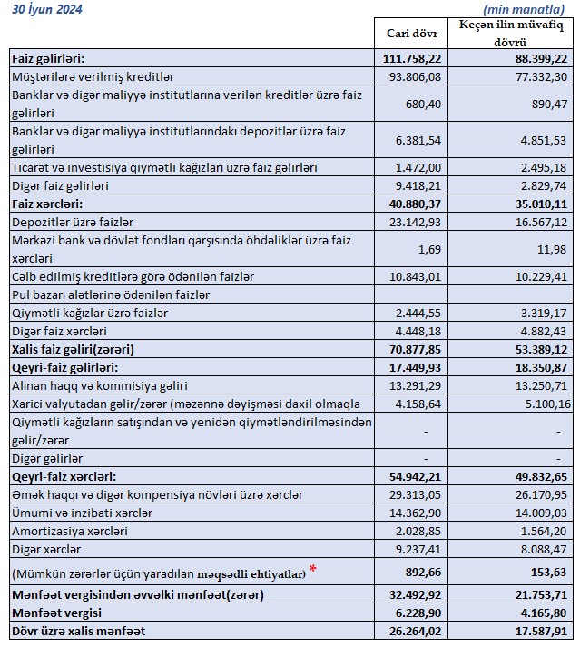 Həmçinin, ilk 6 ayda Bank əməliyyat mənfəətindən 893 min manat mümkün zərərlər üçün yaradılan məqsədli ehtiyata ayırıb. 2023-cü ilin eyni dövründə "Bank Respublika" əməliyyat mənfəətindən 154 min manat ehtiyata ayırmışdı.
