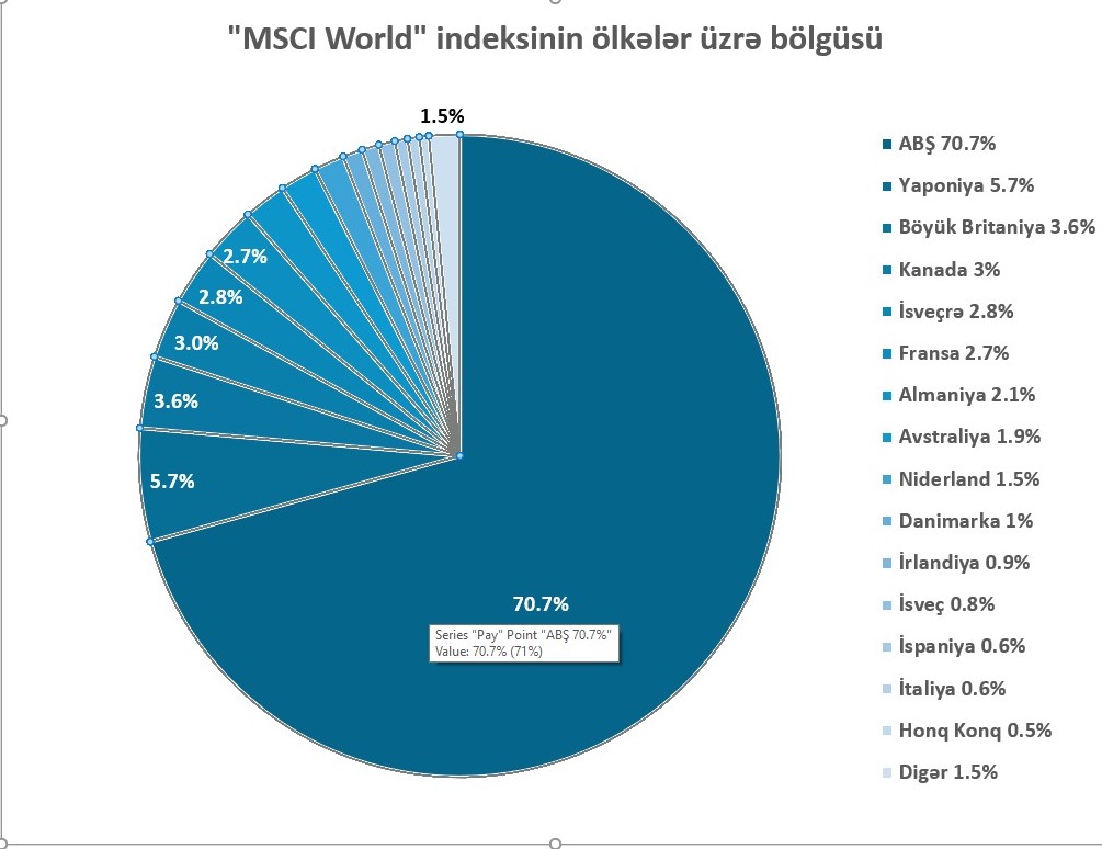 Qeyd olunub ki, əksər institusional investorlar, o cümlədən suveren sərvət və pensiya fondları kimi ARDNF də kotirovka olunan səhmlərə investisiyalarını həyata keçirərkən passiv idarəetmə strategiyasından istifadə edir. Bu strategiya individual şirkətlərin səhmlərinə investisiya etmək əvəzinə, “MSCI World” kimi xüsusi səhm indekslərini izləməyi nəzərdə tutur. ARDNF-nin səhm portfeli üzrə izlədiyi əsas indeks olan “MSCI World” indeksi 23 inkişaf etmiş ölkənin 11 sektoru üzrə 1430 şirkətin səhmlərini özündə birləşdirir. Bu şirkət səhmlərinin toplam bazar kapitalizasiyası 70 trilyon ABŞ dollarına yaxındır.